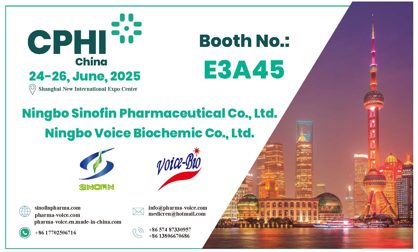 Ningbo Sinofin Pharmaceutical Co., Ltd. will attend the 23rd (2025) Convention of Pharmaceutical Ingredients at booth E3A45 in Shanghai New International Expo Center from June 24 to 26.